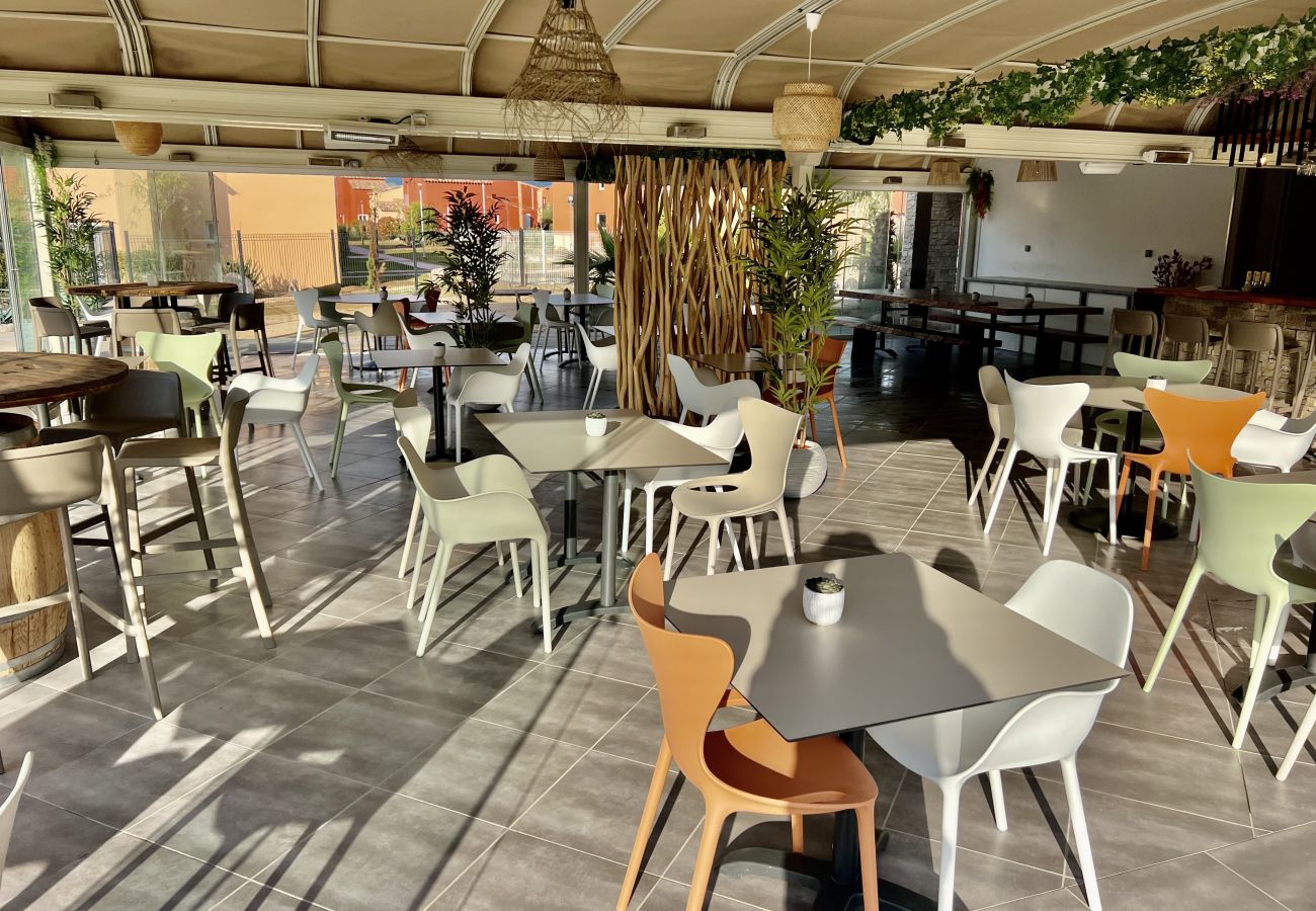You have access to a garden, a pool house where you can have a drink, eat a pancake or enjoy a delicious ice cream around 3 beautiful swimming pools.