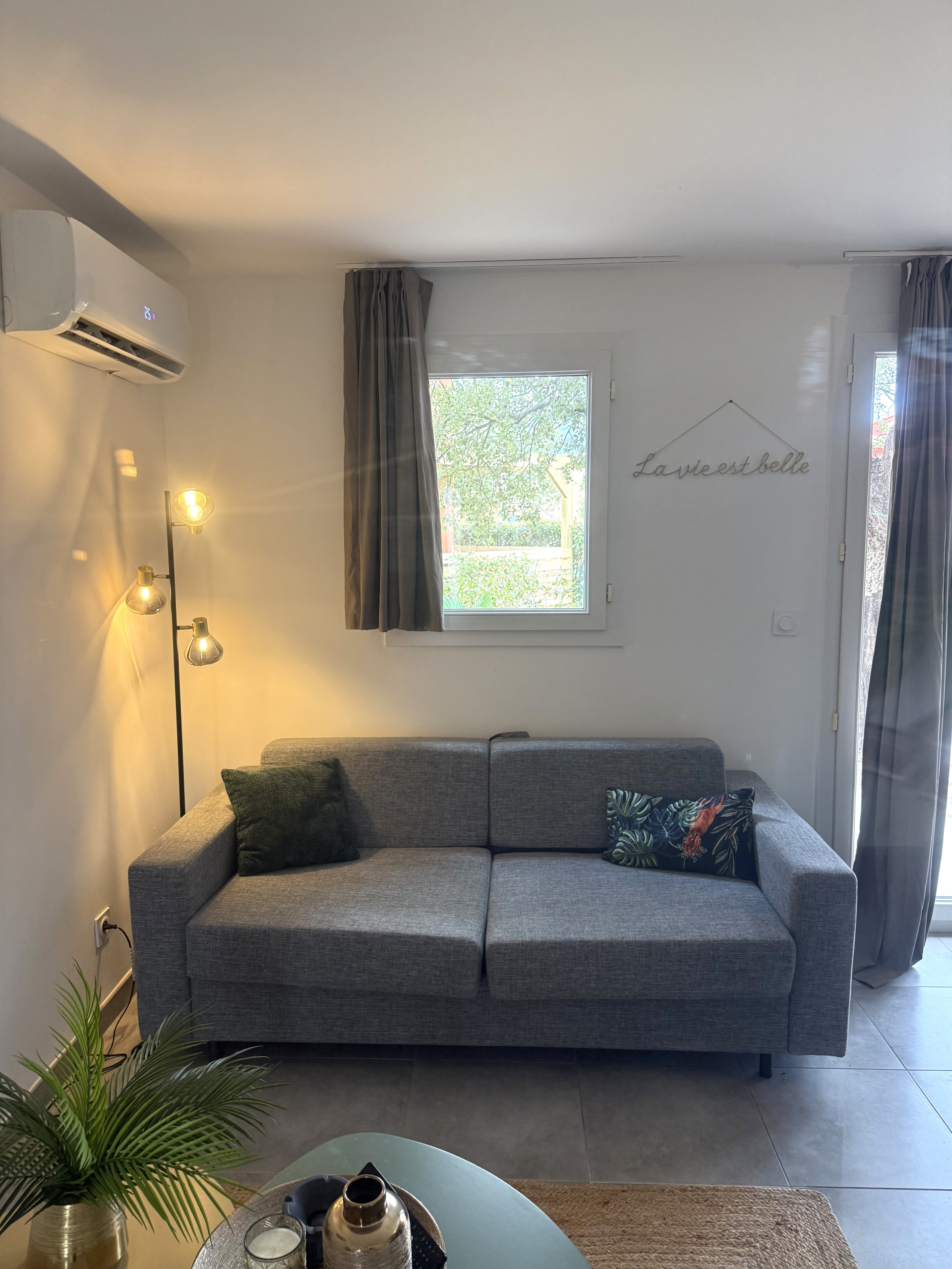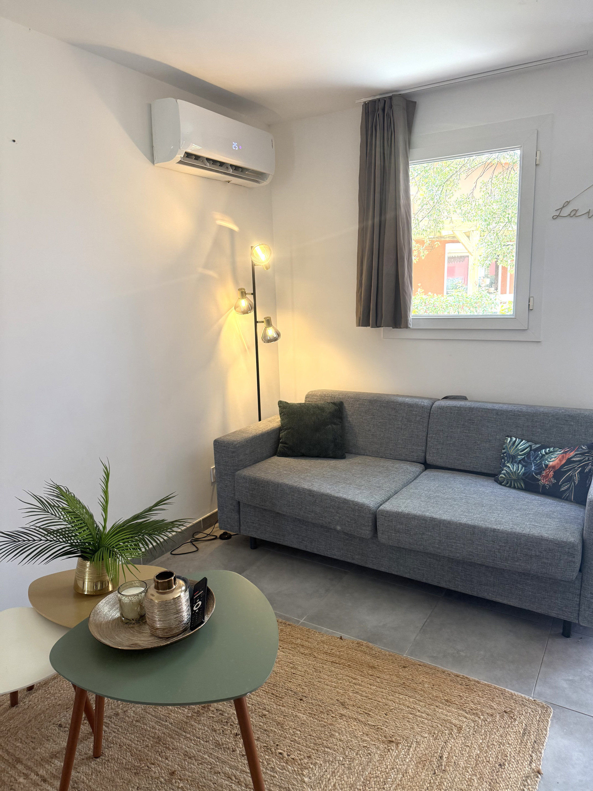 Perfect for a family of 4, this air-conditioned 25m2 accommodation on the 1st floor includes a bedroom, a bathroom with toilet, a fully equipped American kitchen with ceramic hob, refrigerator, microwave, Nespresso coffee machine, toaster, kettle and all necessary utensils, electric heating.