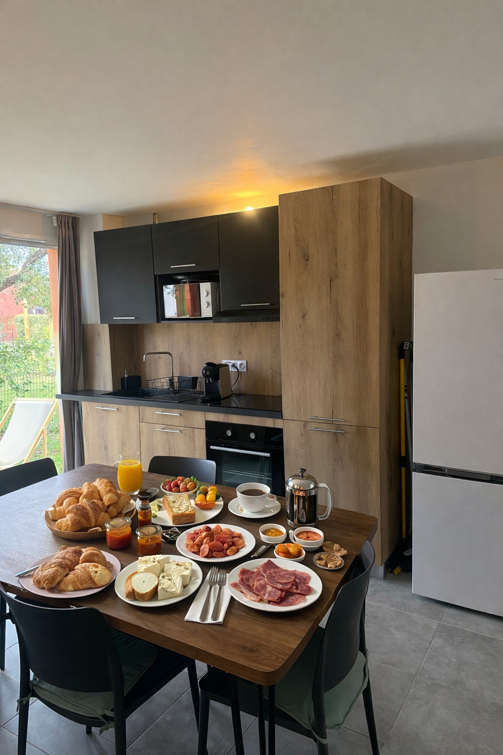 Perfect for a family of 4, this air-conditioned 25m2 accommodation on the 2nd floor includes a bedroom, a bathroom with toilet, a fully equipped American kitchen with ceramic hob, refrigerator, microwave, Nespresso coffee machine, toaster, kettle and all necessary utensils, electric heating.