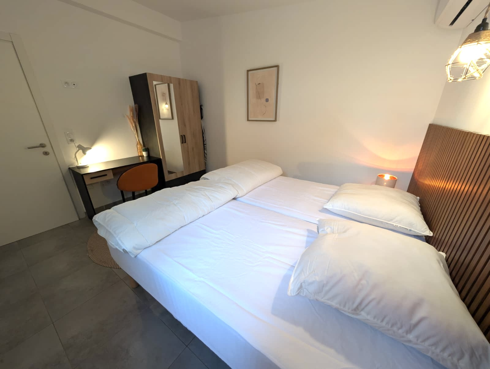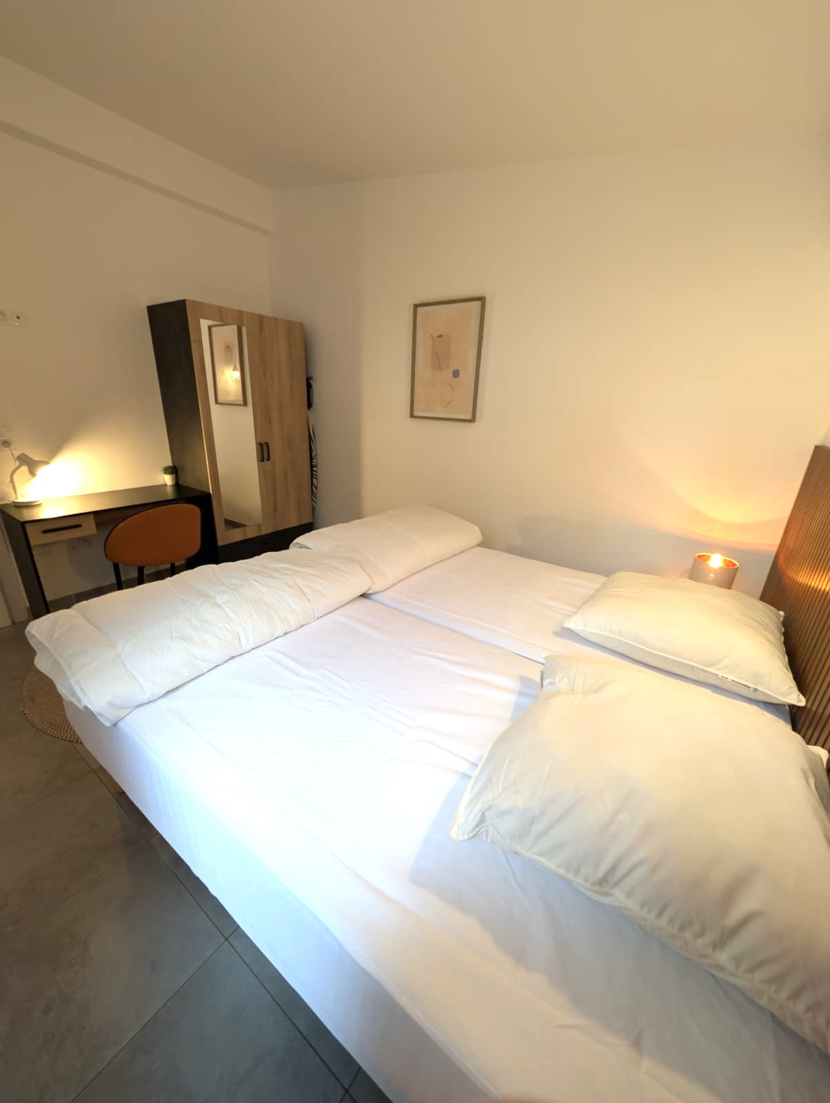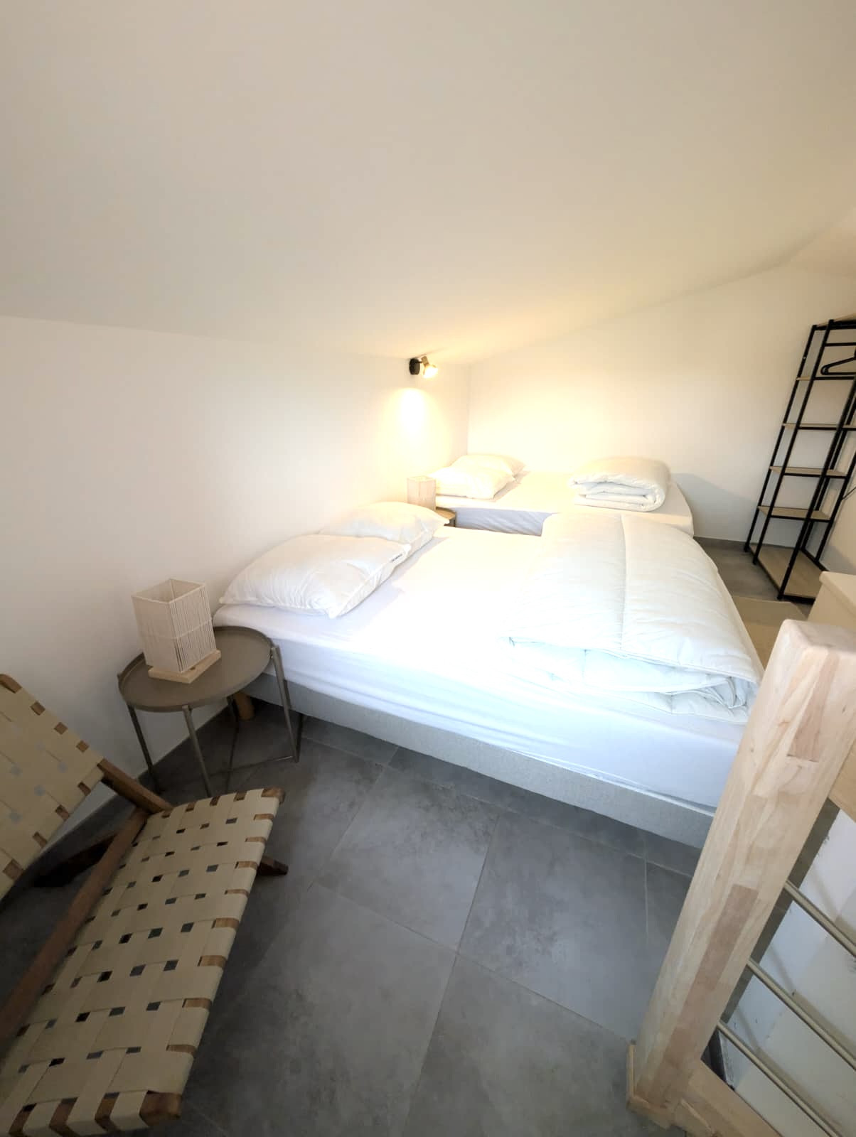The interior features two comfortable bedrooms: one equipped with a king-size bed and the other with a double sofa bed, ensuring optimal rest for all occupants. The fully equipped American kitchen will allow you to prepare delicious meals with its numerous appliances: refrigerator, freezer, oven, microwave, coffee machine, and much more.