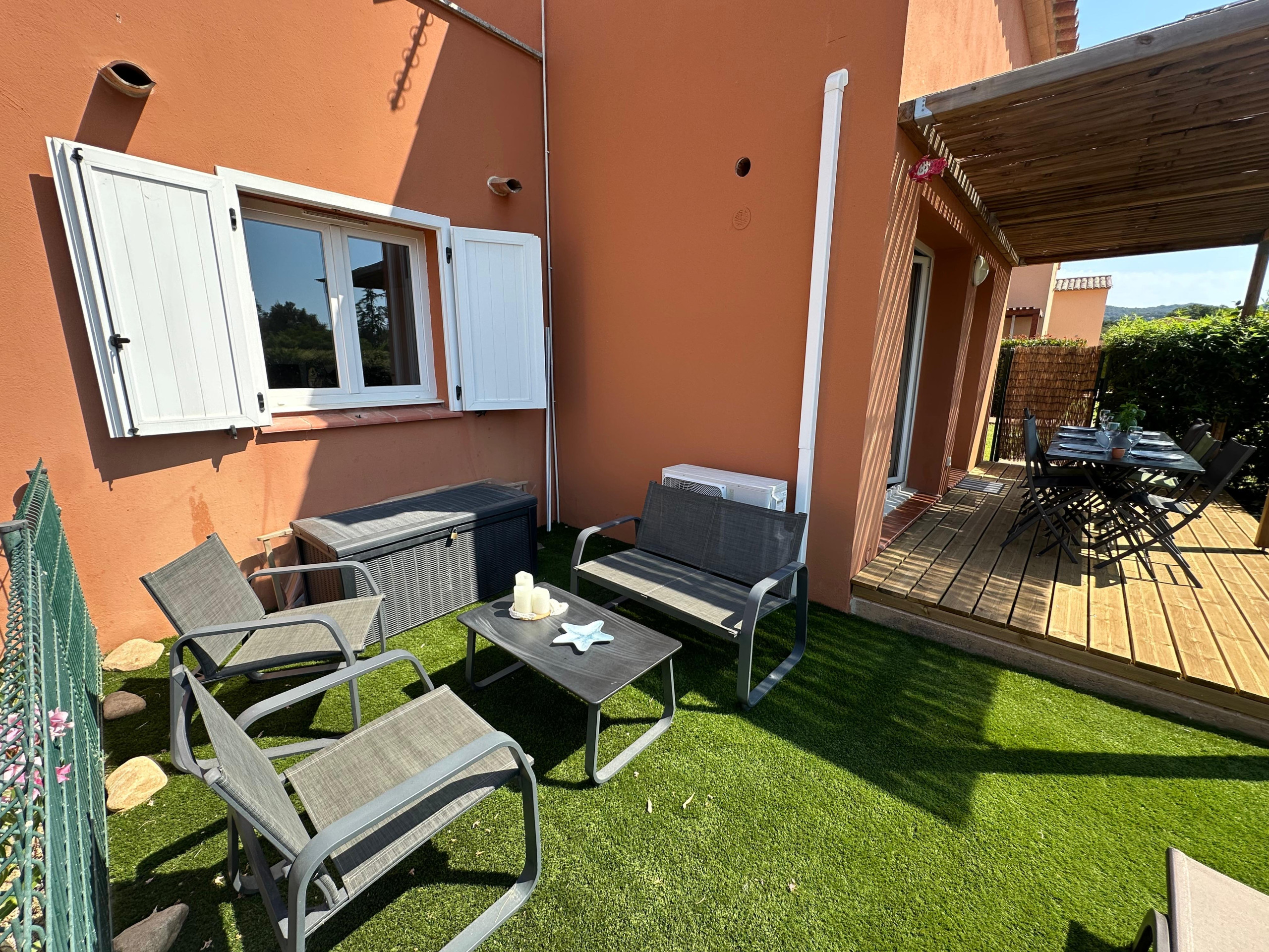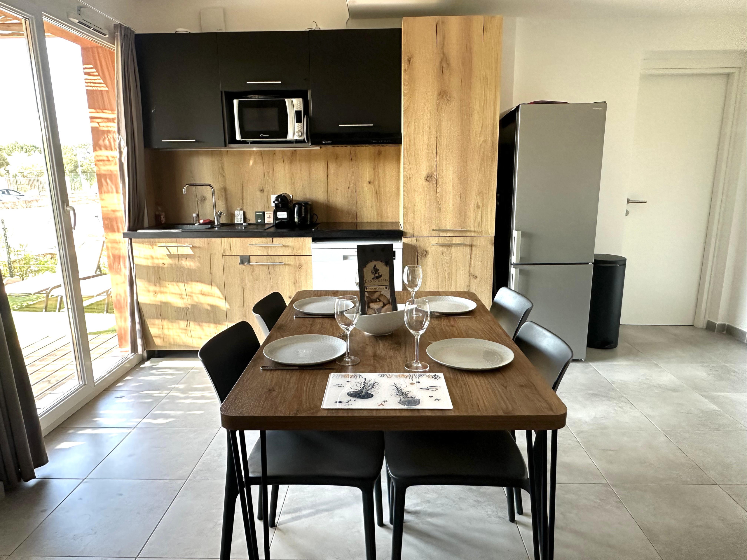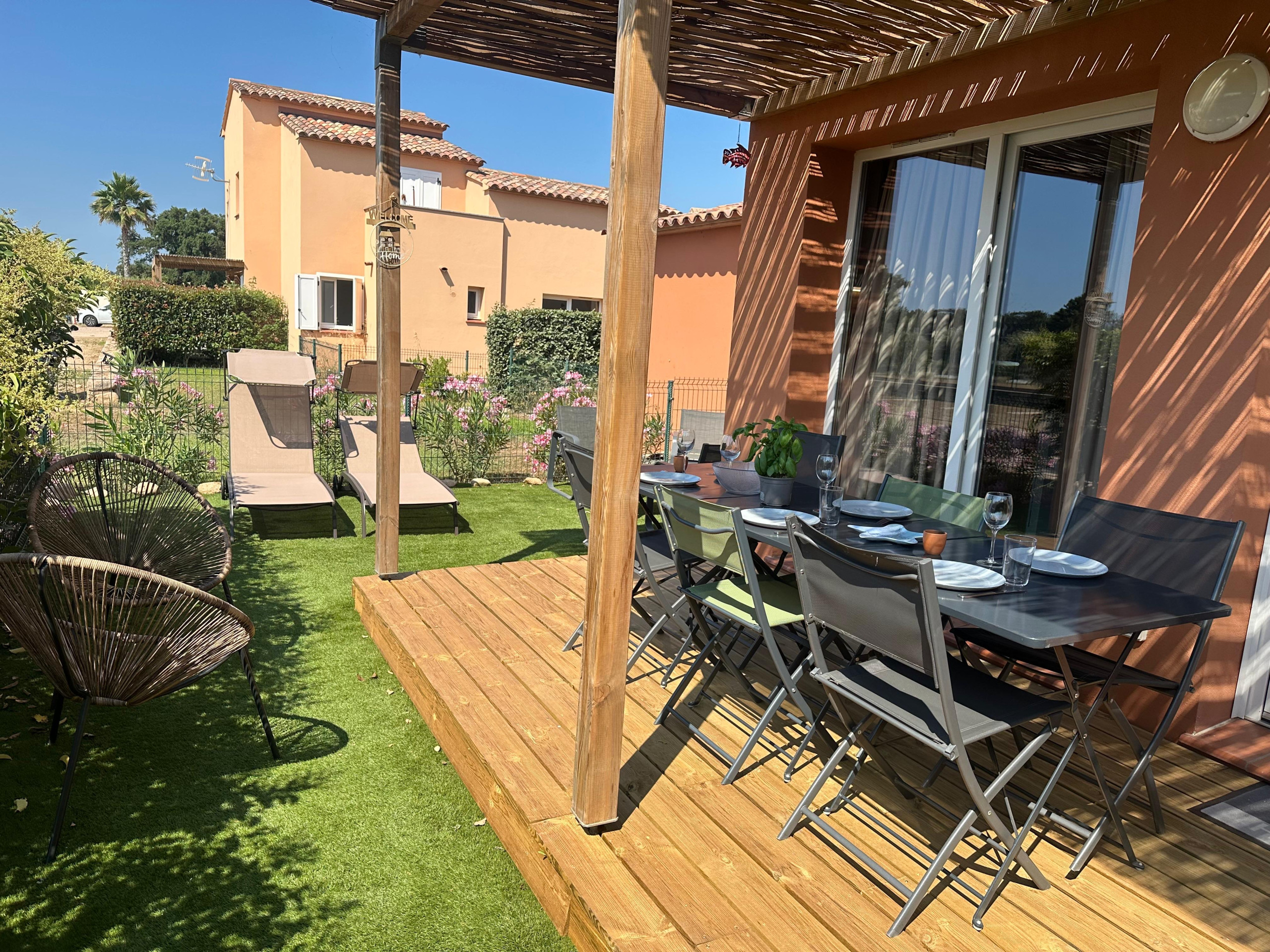 Apartment located on the ground floor of the Fiori di Cala Rossa hotel residence, in a quiet and green setting in Lecci, near Portovecchio, Capacity for 6 people. bed linen, towels and cleaning are included.