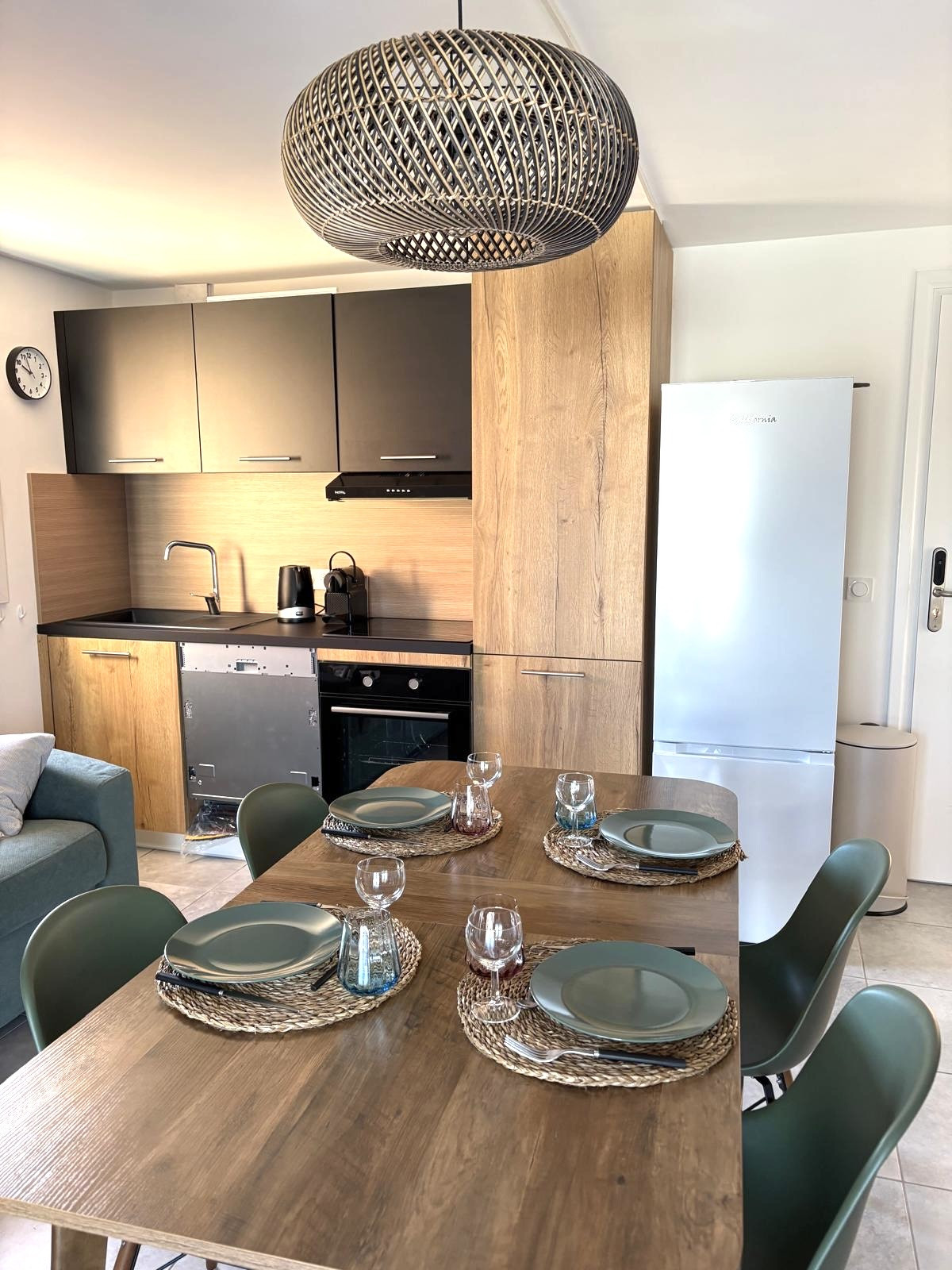 La cucina americana, a vetroceramica, è attrezzata con frigorifero, microonde, forno, congelatore, lavastoviglie, stoviglie/posate, utensili/cucina e macchina da caffè Nespresso, tostapane e bollitore. Televisione.