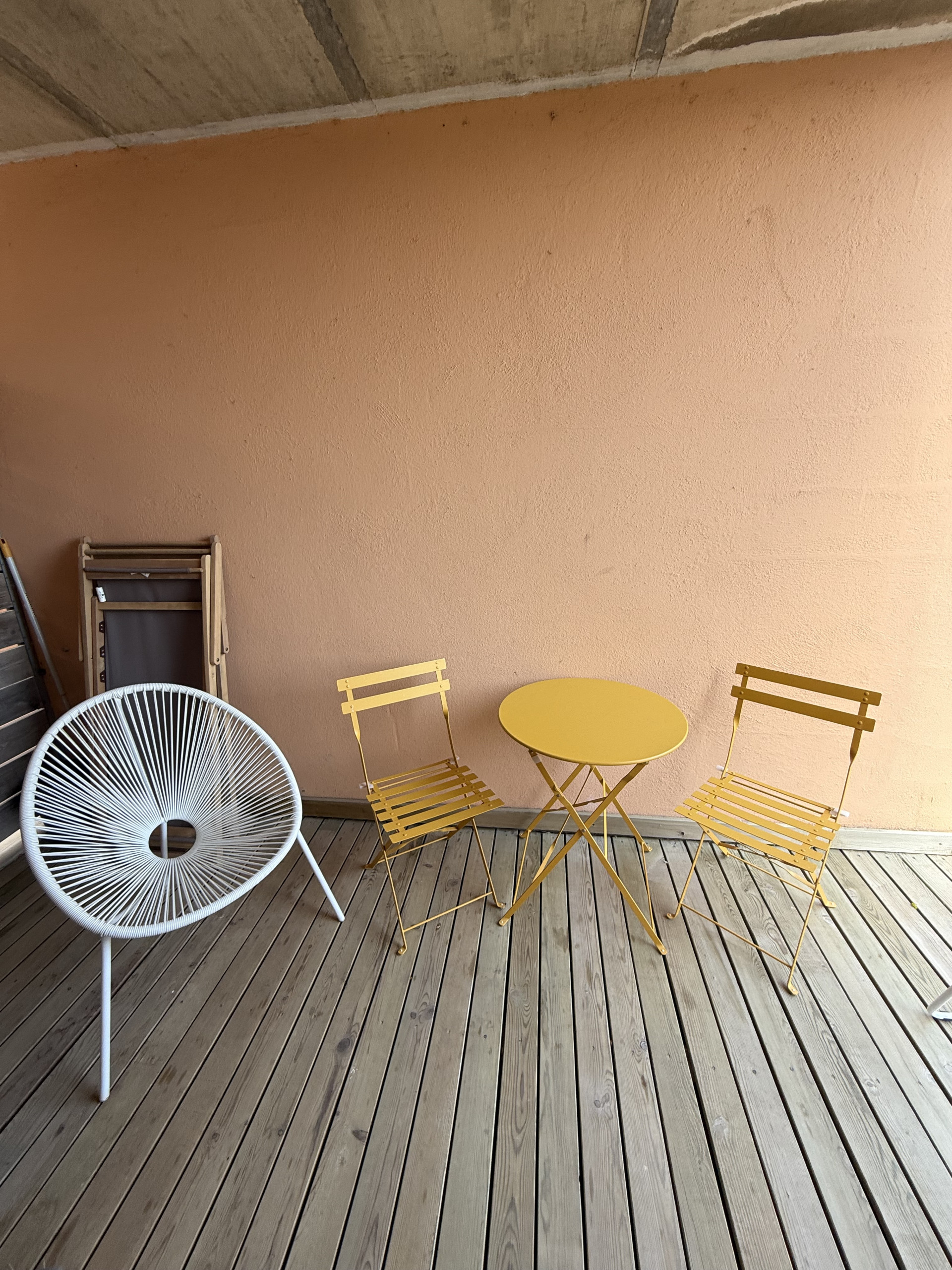 Un extérieur agréable, une terrasse de 7m2, équipée d'un mobilier de jardin.