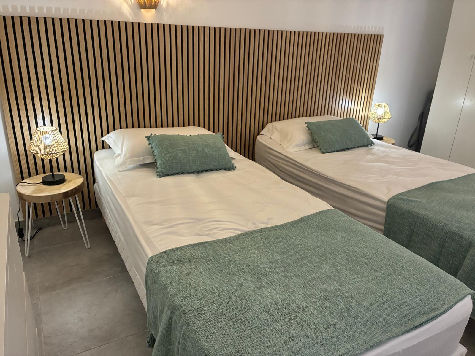 À l'intérieur, vous trouverez deux chambres confortablement aménagées : une avec un lit king size et une autre avec un canapé-lit double. La cuisine américaine entièrement équipée vous séduira par ses nombreux équipements : réfrigérateur, congélateur, four, micro-ondes, machine à café, bouilloire, et bien plus encore. Idéal pour concocter de délicieux repas pendant vos vacances.