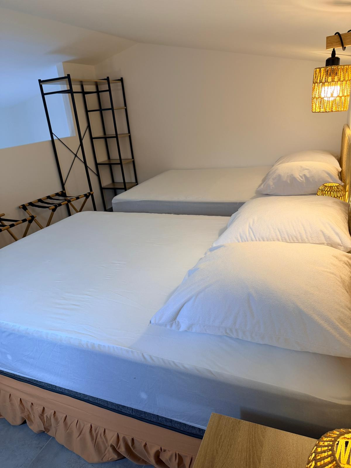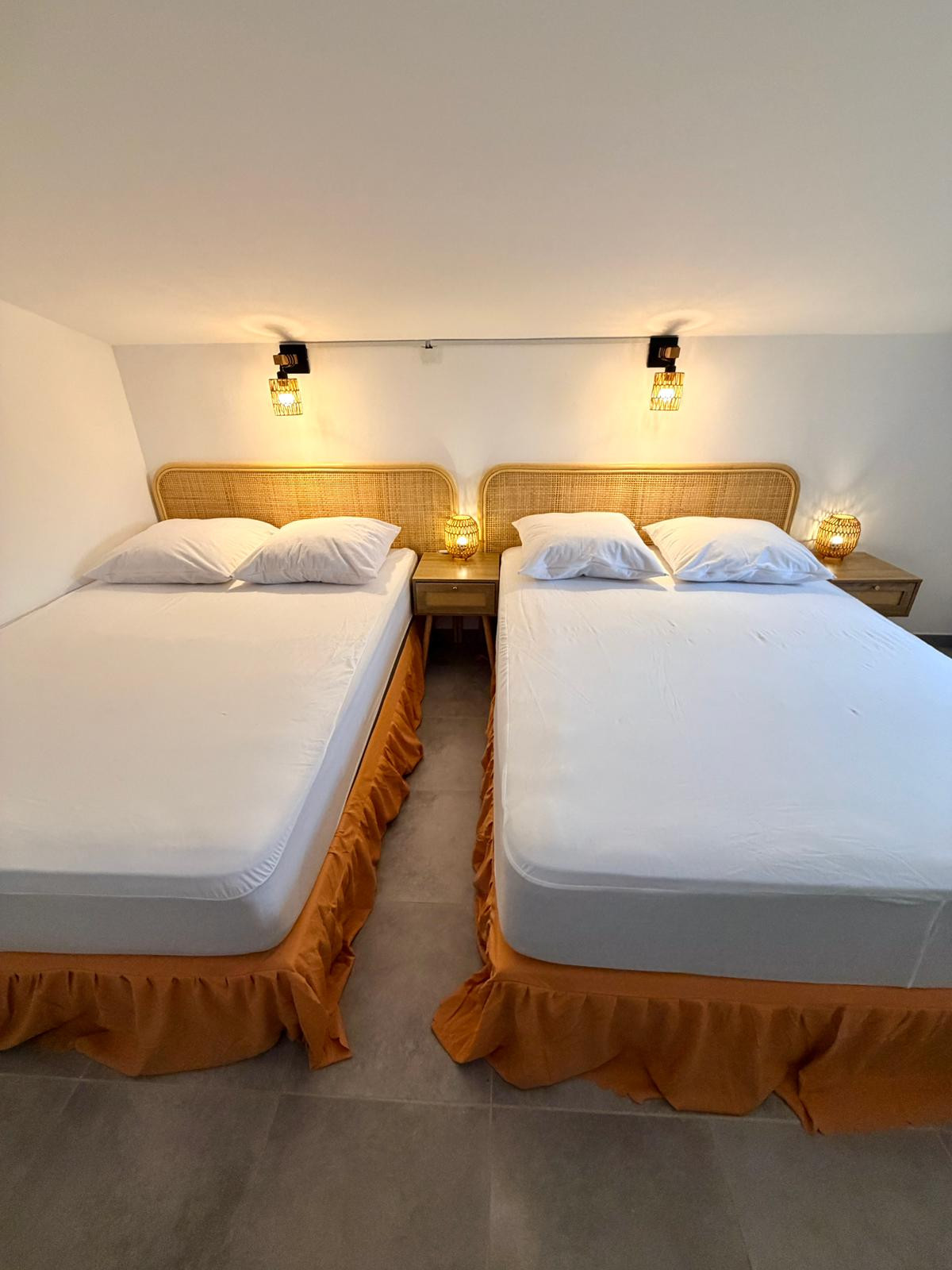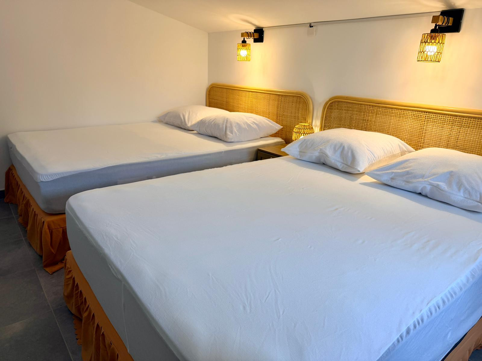 L'intérieur dispose de deux chambres confortables, équipées de 3 lits king size, garantissant un repos optimal pour tous les occupants. La cuisine américaine entièrement équipée vous séduira par ses nombreux équipements : réfrigérateur, congélateur, four, micro-ondes, machine à café, bouilloire et ustensiles de cuisine complets.